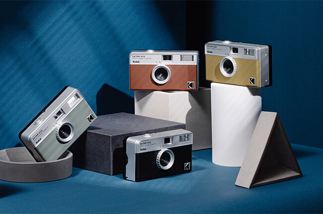 Самым первым релизом ребят стала 3D-пленочная камера RETO3D, снимающая объект под 3-мя немного разными углами, которые в их приложении можно сшивать в маленькие 3D-видео. Далее был выпуск контейнеров для плёнки, который был официально лицензирован компанией Kodak. И сейчас Retopro объявили о выходе второго продукта под этим брендом - компактной автоматической камеры Kodak Ektar H35. В чем ее особенности? В Ektar H35 установлен несъемный объектив с фокусным расстоянием 22mm, которые дает более широкий угол обзора, чем фокусное в 31mm у других известных компактных камер от Kodak - M35 и Ultra F9, поступивших к нам ранее. В камере есть встроенная отключаемая вспышка — она питается от одной батареи ААА. Немного непривычно, что включать ее придется поворотом серебристого кольца вокруг объектива. Диафрагма, кстати, фиксированная (f/9.5), и затвор также работает с единственной выдержкой 1/100. Перемотка плёнки осуществляется вручную.