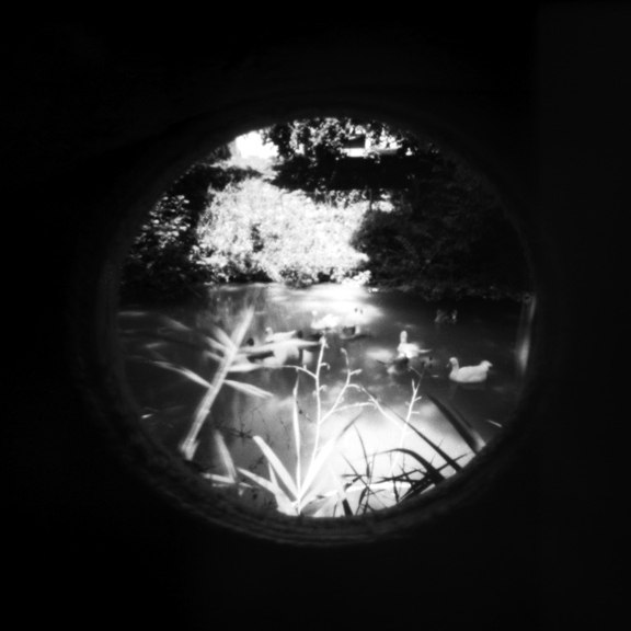 Я брал пинхол-скворечник с собой в поисках таких мест, в которых мне могли бы встретиться птицы. Крыши, пирсы на озерах, кусты, ветки деревьев, пшеничные поля, вскопанная земля... Порой я даже забирался на крыши домов и деревья, чтобы заполучить "взгляд глазами птицы"; иногда просто ставил камеру на землю, как если бы одна из перелетных птиц остановилась передохнуть и подкрепиться. Я экспонировал пленку от 4 до 20 секунд, поэтому птицы, которые мне встречались, обычно не попадали в кадр. Разве что стая уток оказала мне услугу и замерла на мгновение, позируя, и я смог их заснять. Мне приятно думать, что они поняли и оценили мою работу.