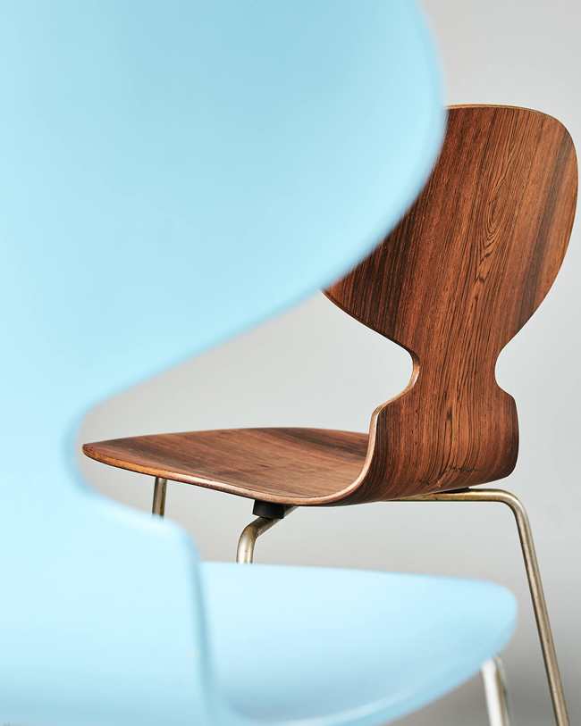 В 1950-х годах архитектор совершил большой прорыв в качестве дизайнера мебели. Вместе с производителем Фрицем Хансеном в 1952 году он разработал Ant, складной стул с сиденьем и спинкой, сделанных из цельного листа фанеры. Он правда очень похож на муравья.