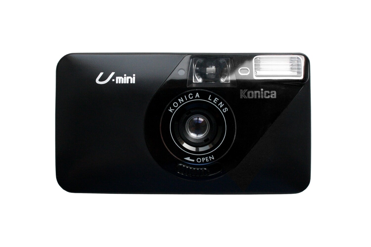 Компактная 'мыльница' от Konica с широкоугольным объективом и встроенной вспышкой.