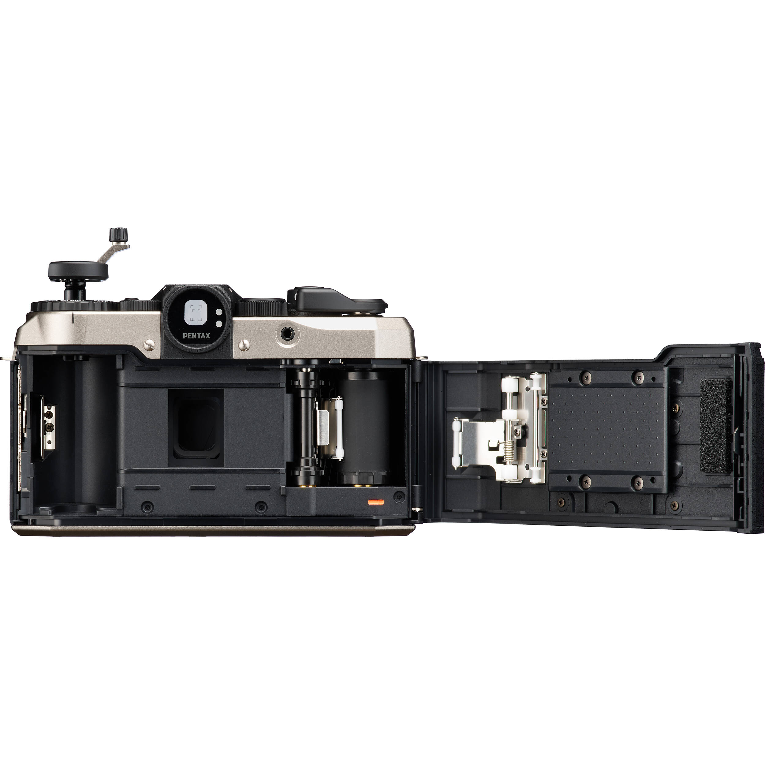 На задней части корпуса фотоаппарата имеется небольшой паз для вставки заметок или кусочка коробки с пленкой, с которым не получится забыть о заряженной пленке.