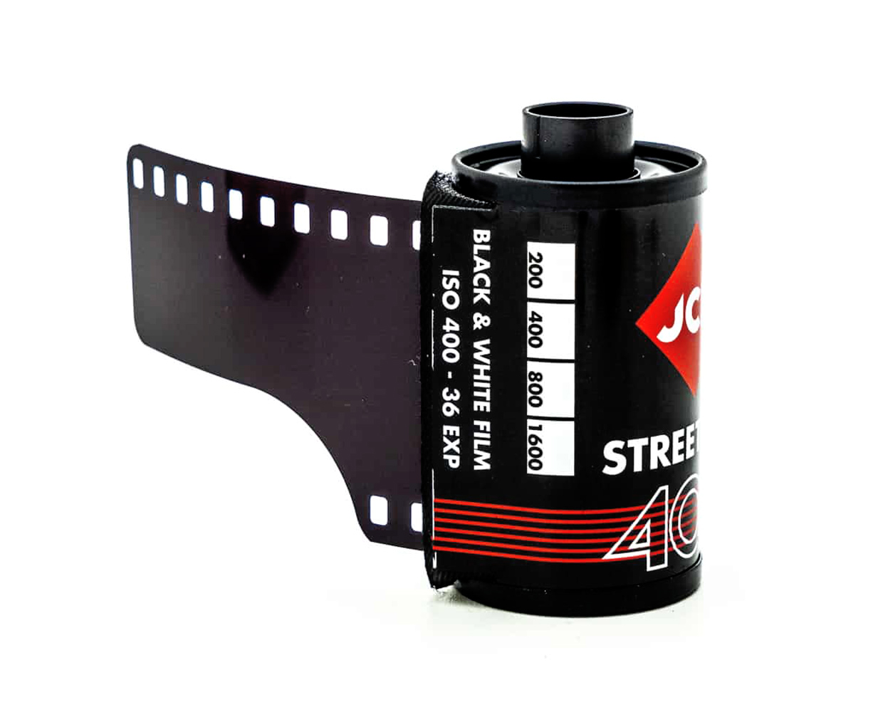 Основа пленки - полиэстер 100 микрон, довольно плотный, чтобы не испытывать неудобств при съемке и обеспечивающий хорошие антистатические свойства материала. Желатиновая подложка защищает пленку от царапин во время съемки и обработки. Мелкое зерно при высокой чувствительности позволяют использовать фотопленку при различной погоде, даже в самых сложных условиях освещенности. Благодаря своей чувствительности к красному свету, JCH StreetPan 400 является оптимальной пленкой для съемок на рассвете, в сумерках и зимой. Контрастность изображения может контролироваться процессом проявки. Поскольку спектральная чувствительность JCH Street Pan близка к инфракрасной фотопленке (чувствительна к ик спектру до 750 нм), можно снимать на нее инфракрасную фотографию. Пленка отлично себя ведет при большинстве процессов проявки и поэтому может быть проявлена как в фотолаборатории в проявочной машине, так и в домашних условиях.